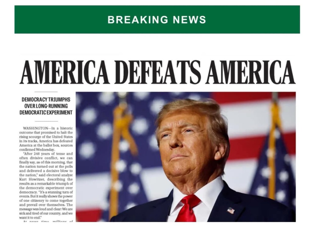 Last week, with my acceptance that Harris lost the election, came a realization that that particular battle was over. No, I’m not throwing in the towel on democracy. I will continue to work toward it. However, I’m no longer going to suit up and stare down the Hydra day after day. I’ve sacrificed a decade of my mental and physical health to an awful cult and I’m not going to give them another day. One week after winning the election, the incoming administration is already proposing a number of changes designed to undermine democracy. It’s clear to me that winning back our country will require a much longer-term strategy.